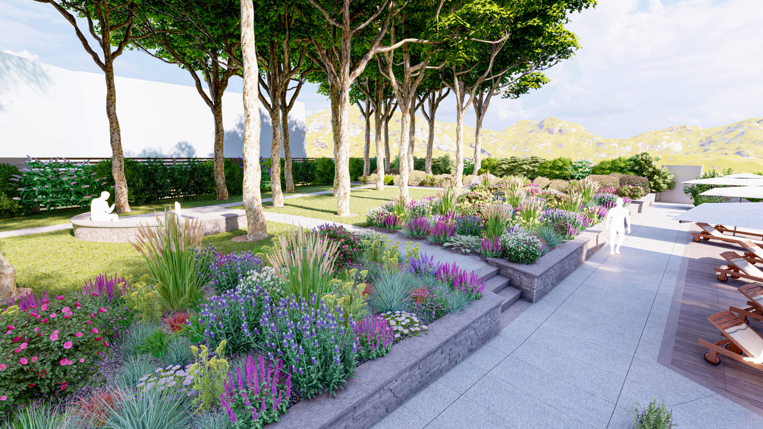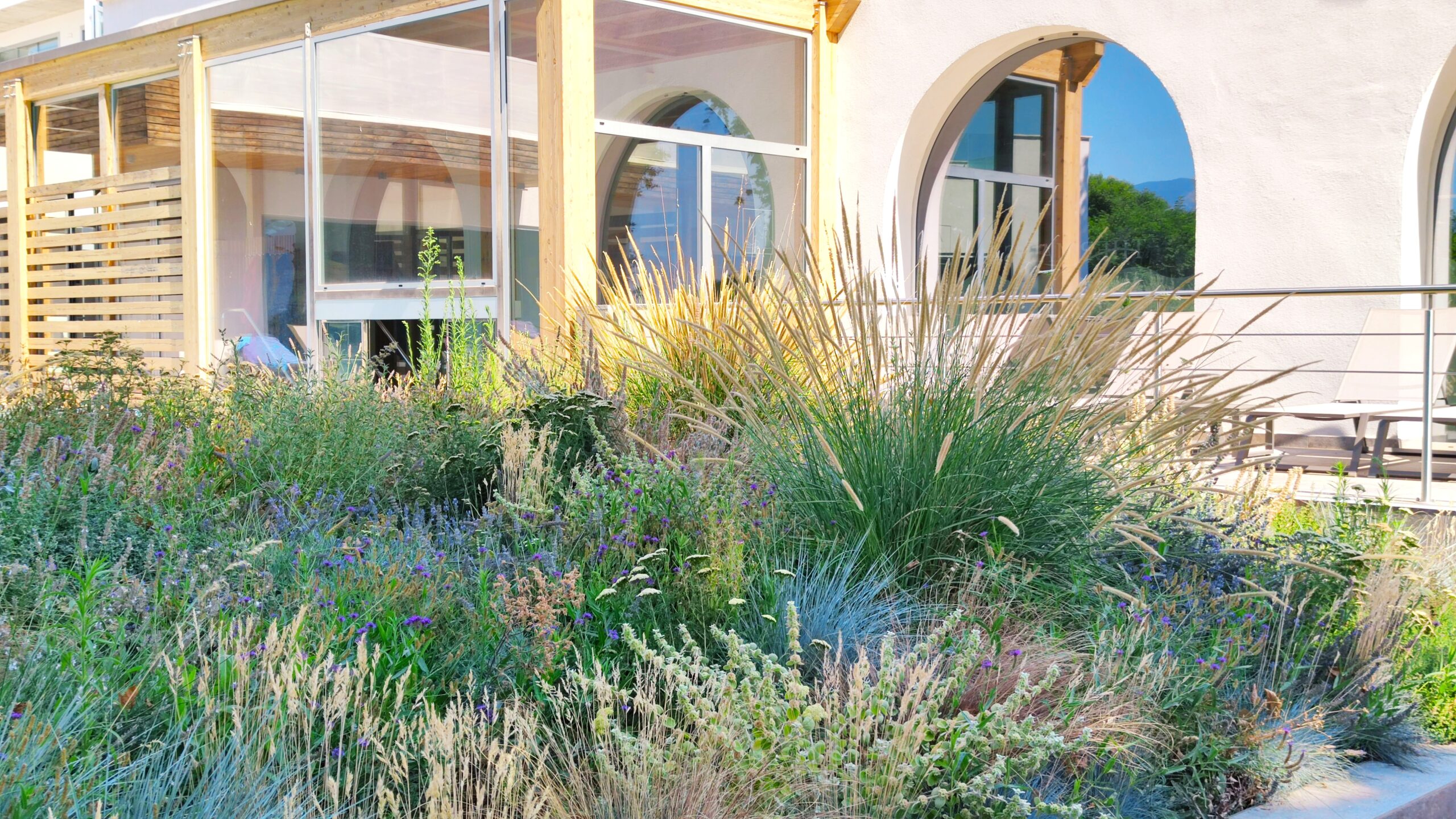 We nestled it within an herbaceous community that ensures soft privacy and a soothing rustle.
