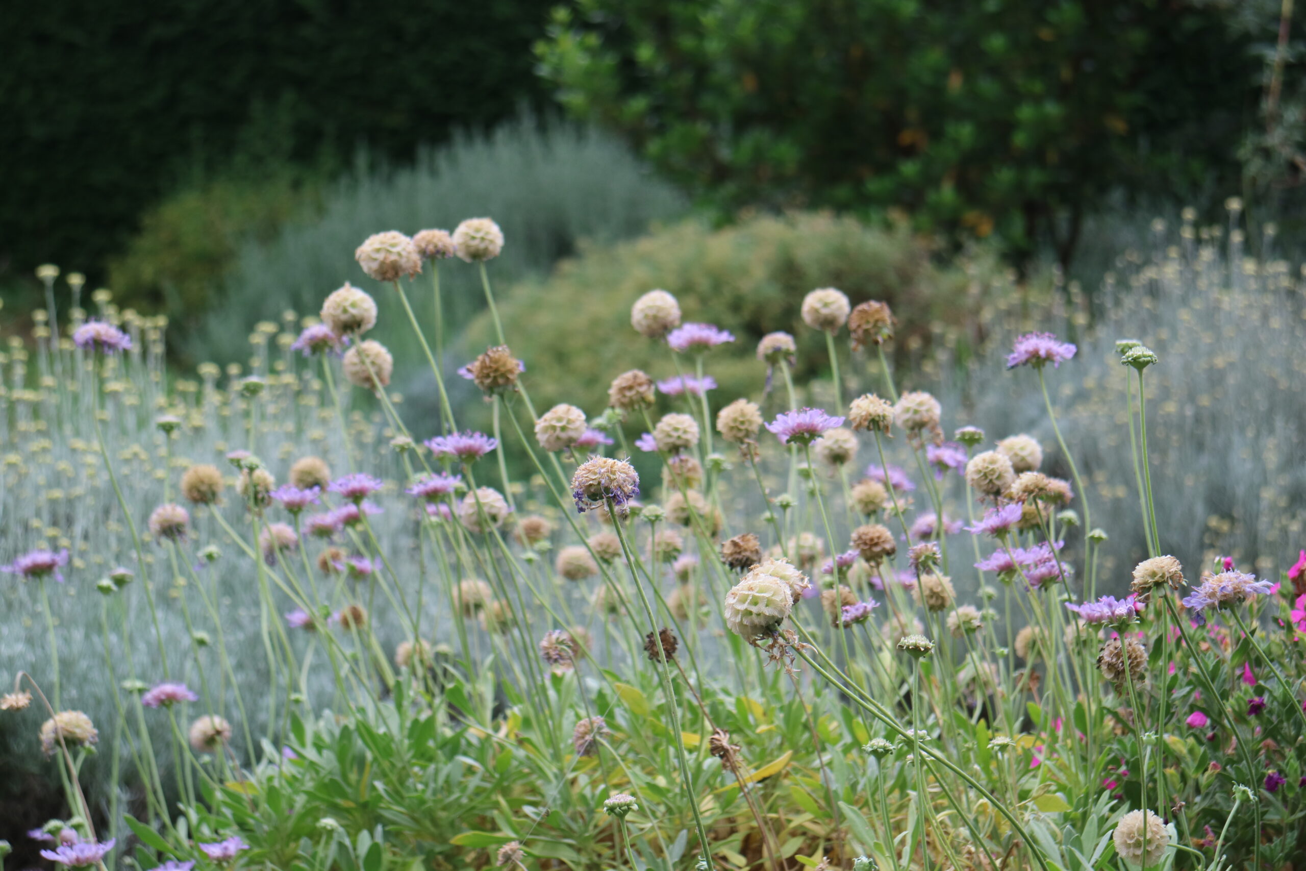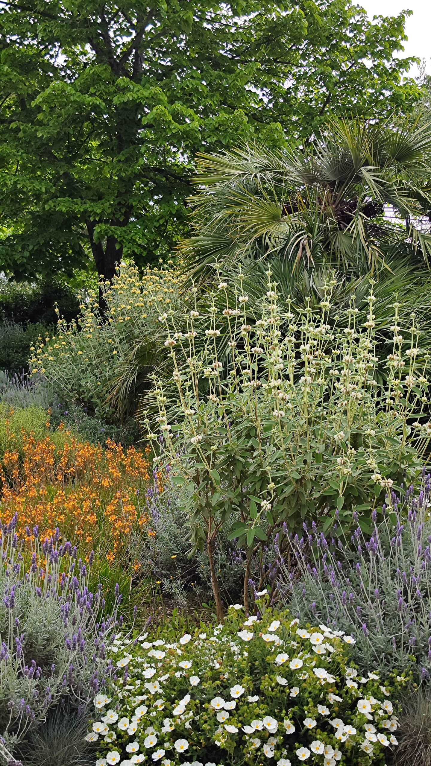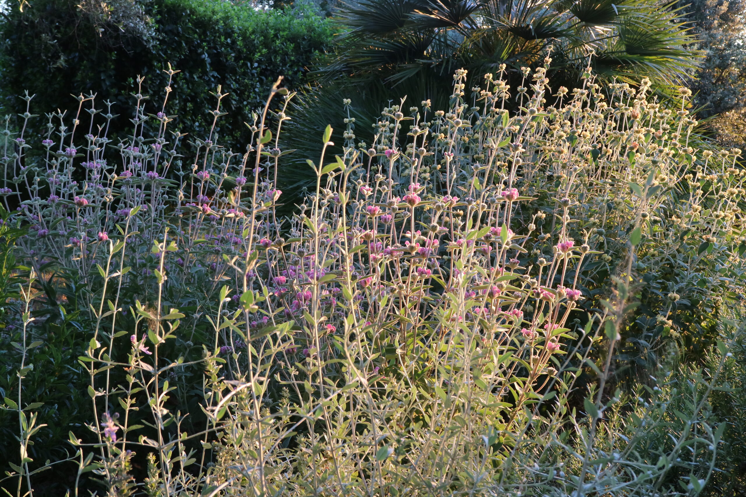È un dialogo continuo tra forme diverse, che dimostra come anche una pianta perenne possa mostrare un carattere indomito e imporsi nella monoliticità degli arbusti.