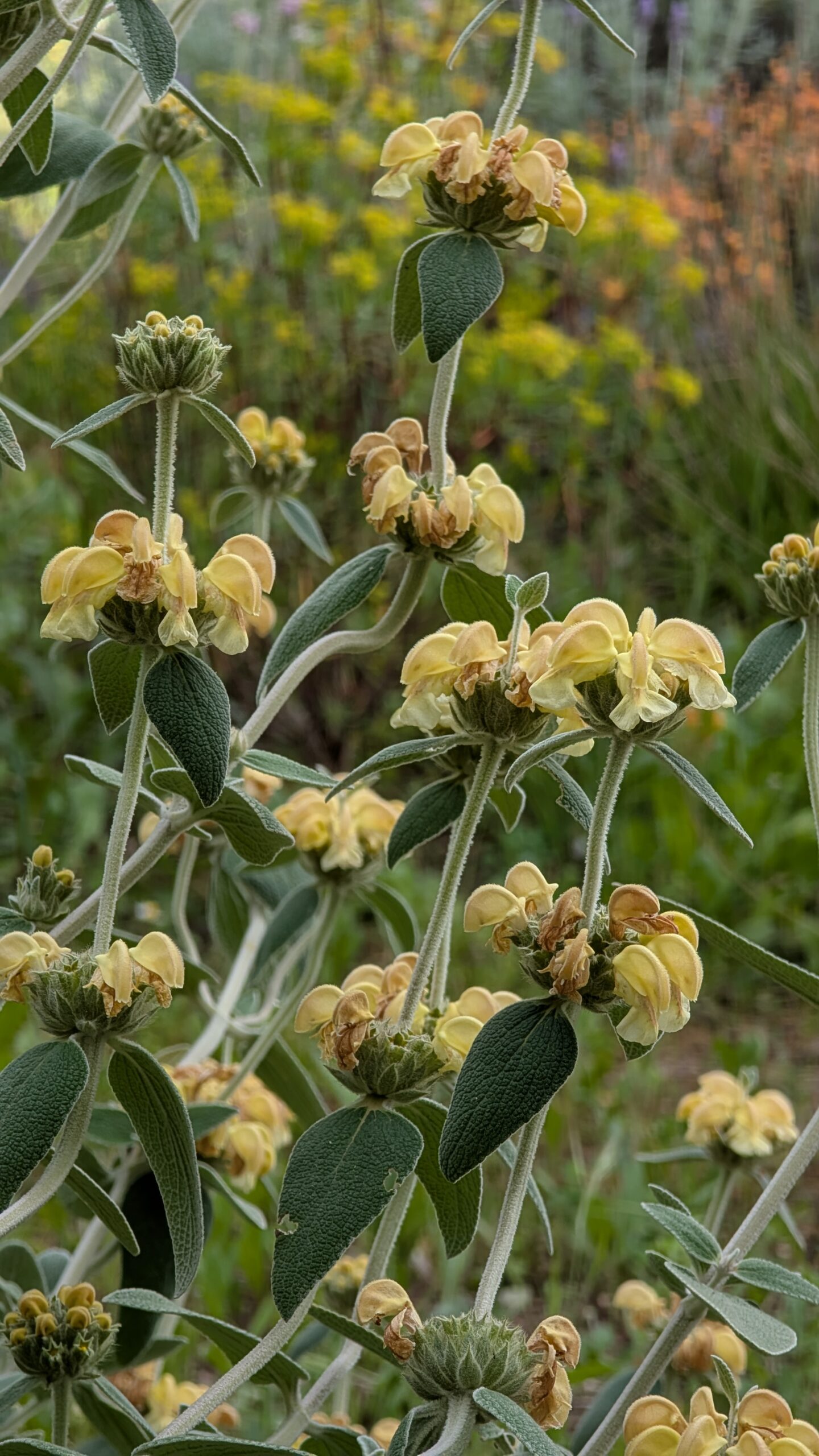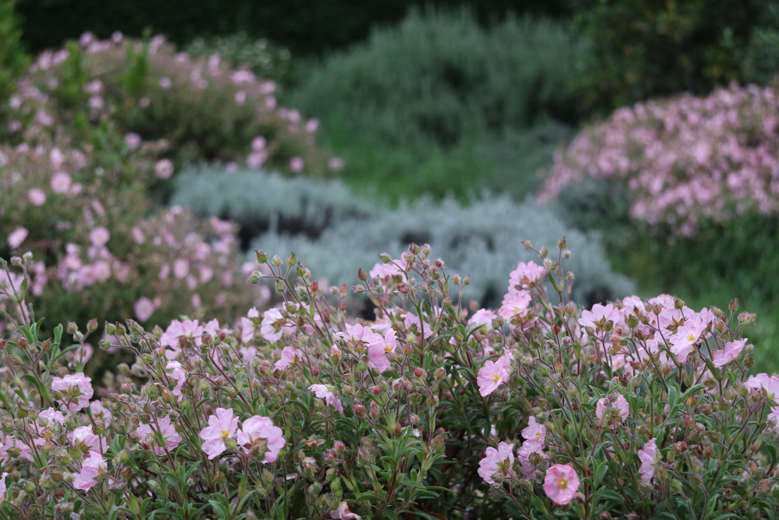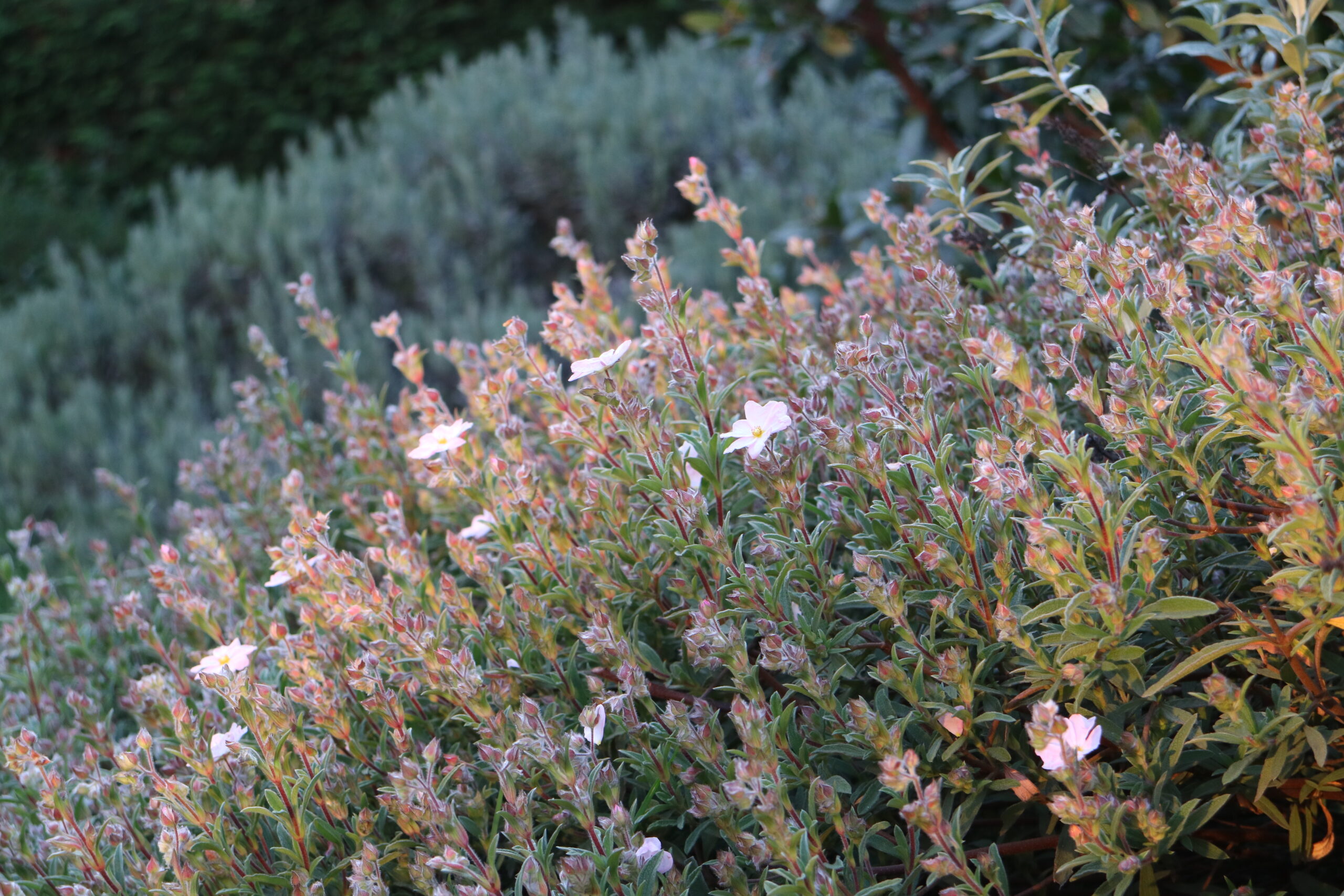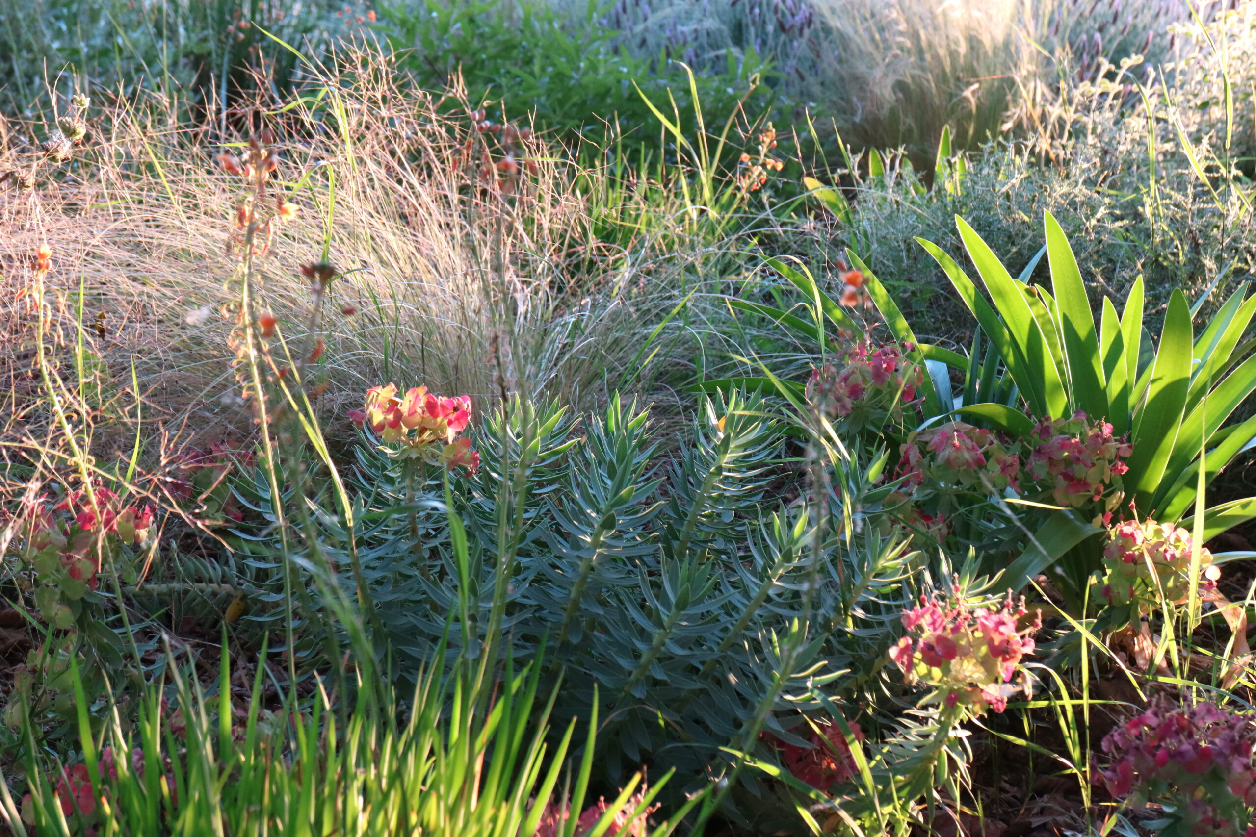 È un dialogo continuo tra forme diverse, che dimostra come anche una pianta perenne possa mostrare un carattere indomito e imporsi nella monoliticità degli arbusti.