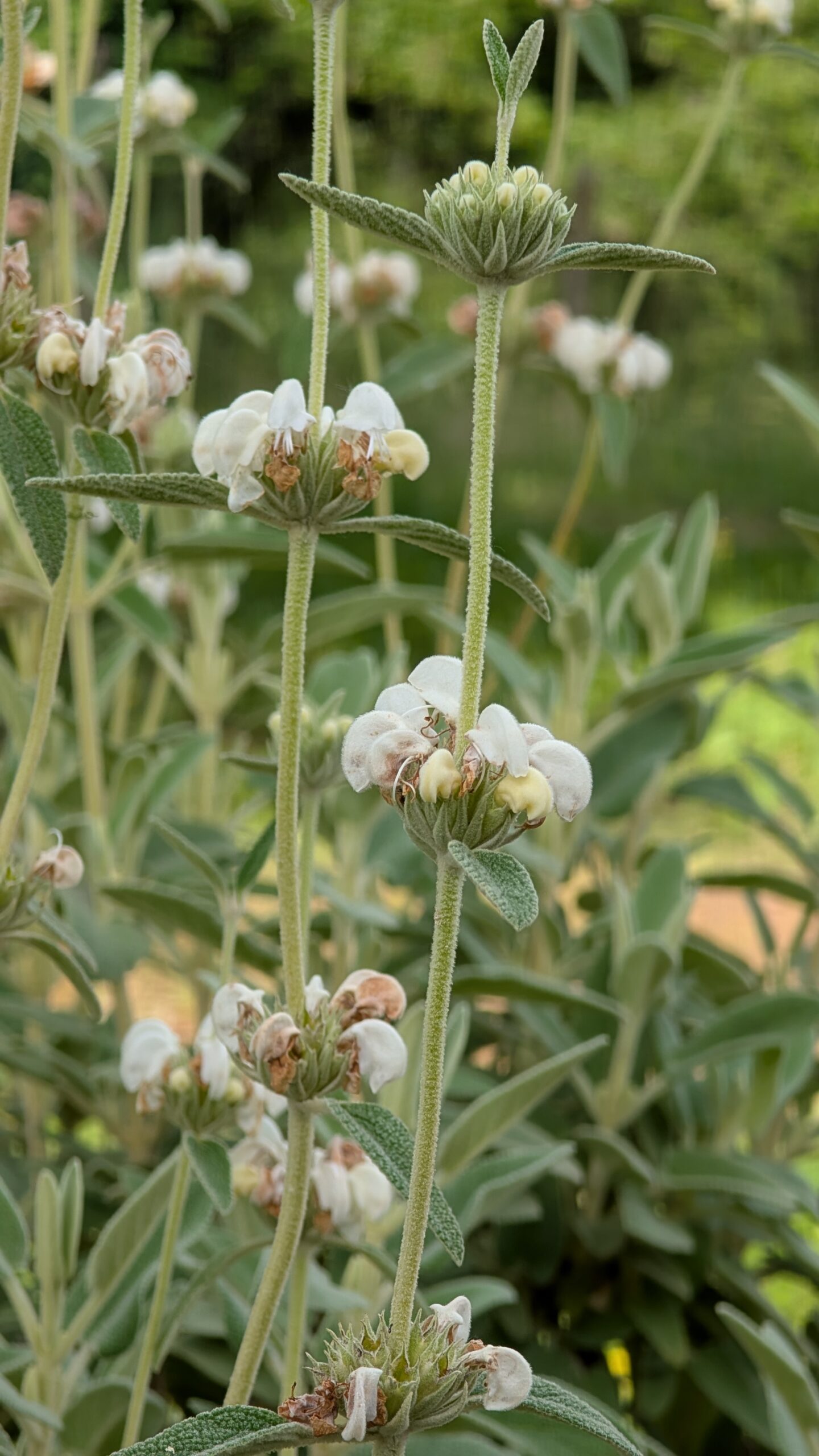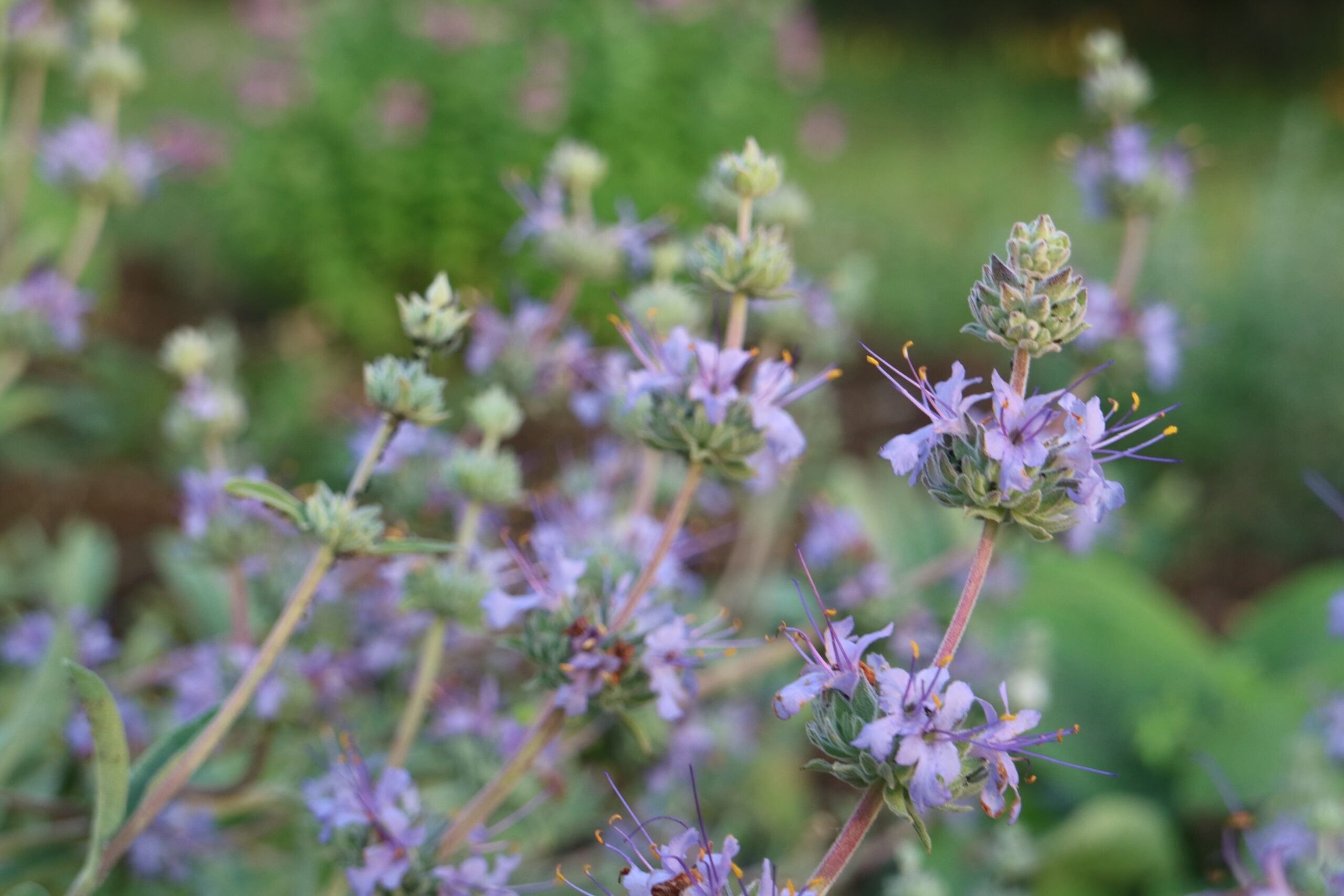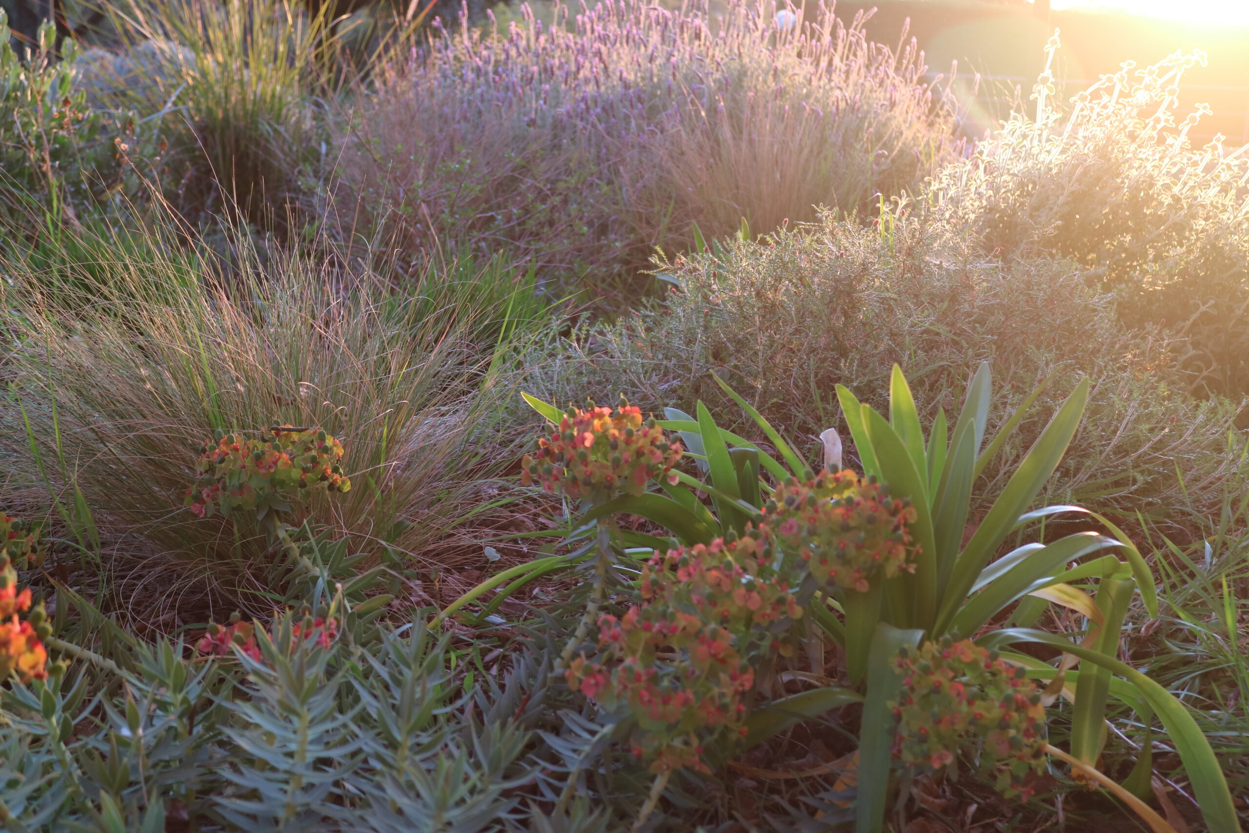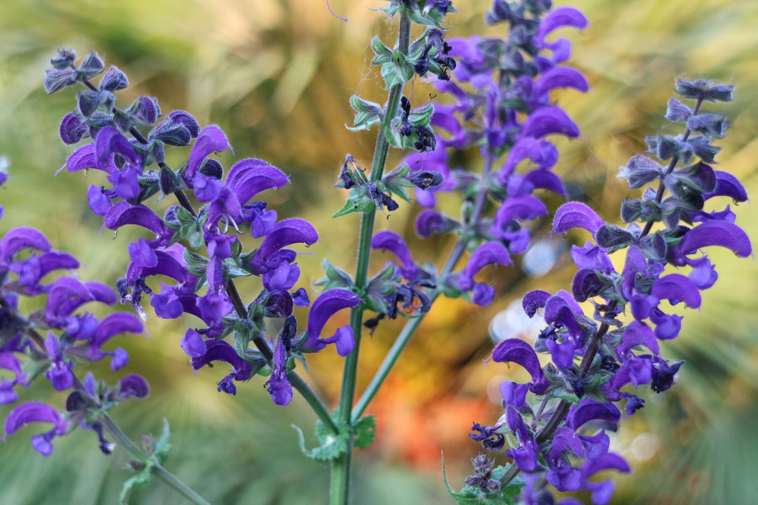 Studio come le piante reagiscono alla siccità: alcune riducono la traspirazione, altre si spogliano. In questo contesto, ho scelto specie rare che mantengono un aspetto rigoglioso anche senz’acqua, come la Salvia canariensis, la Salvia ‘Vicki Romo’ e la Salvia ‘Allen Chickering’.